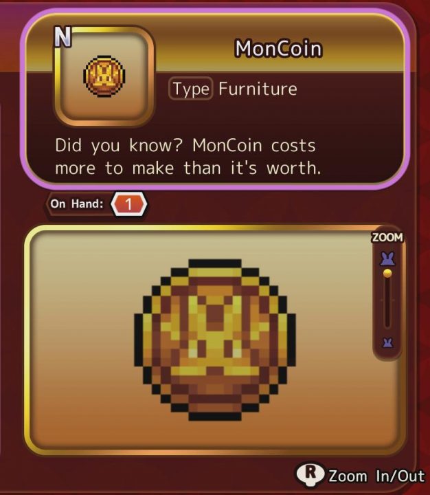 Of course, WORKxWORK already had a rich vein of wordcraft to tap into. In lieu of experience points, our titular heroes level up by accumulating a cryptocurrency called モンコイン ("MonCoin"), which was punny enough to include as-is. Hey, if it ain’t broke, don’t fix it!