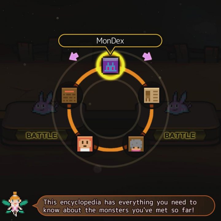 As we delved deeper into the text, we found ways to take this joke and run with it by turning straightforward descriptors such as モンスターずかん (monsutāzukan, "Monster Encyclopedia") and the バトルモンスター班 (batorumonsutāhan, "Battle Monster Team") into the MonDex and the MonStar Team, respectively.