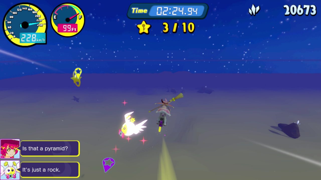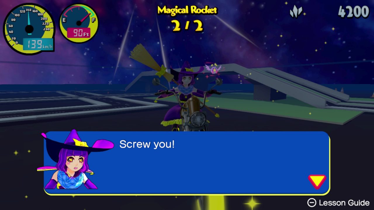 Vroom in the night sky by POISOFT was a March 3, 2017 launch title for the Nintendo Switch in multiple regions around the world. The English version quickly became notorious for its poor translation.